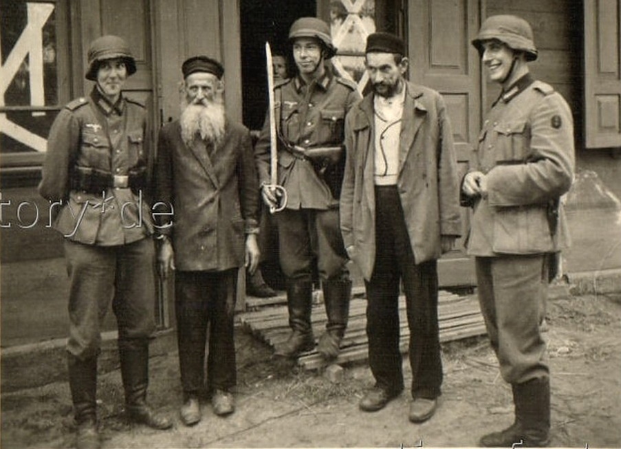 Брест. 15 сентября 1939 г. Весёлые нацисты и невесёлые евреи. Через неделю Брест отойдет Красной Армии. По мнению некоторых "особо одаренных", СССР поступил не правильно, "оккупировав" Западную Белоруссию и Украину; нацисты для этих господ явно предпочтительнее. Характерный пример, из воспоминаний Якова Шепетинского, отсидевшего 8 лет при Сталине после войны, которого никак не обвинишь в "сталинизме": "Мы считали красноармейцев нашими спасителями. Начиная с 1938 года, после Мюнхенской конференции и раздела Чехословакии, в котором и Польша приняла свое участие, отношение польских властей к евреям резко ухудшилось. А когда мы слышали по радио речи Геббельса, а позже прочли и узнали, что пишет Гитлер в своей книге "Майн Кампф", то волосы становились дыбом от всего услышанного и прочитанного.Мы чувствовали себя заложниками, заранее приговоренными к смерти.