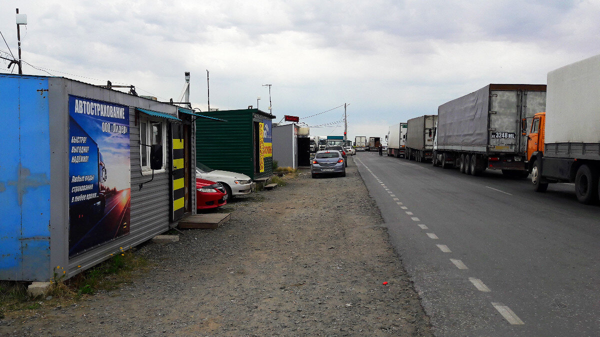 Вот наконец-то мы и на территории ПогранПерехода, далее ПП. По 20 минут на оформление и совсем поверхностный досмотр и мы в Казахстане. На все ушло меньше 2,5 часов. Из них 1,5 час просто стояли перед воротами на российской стороне.