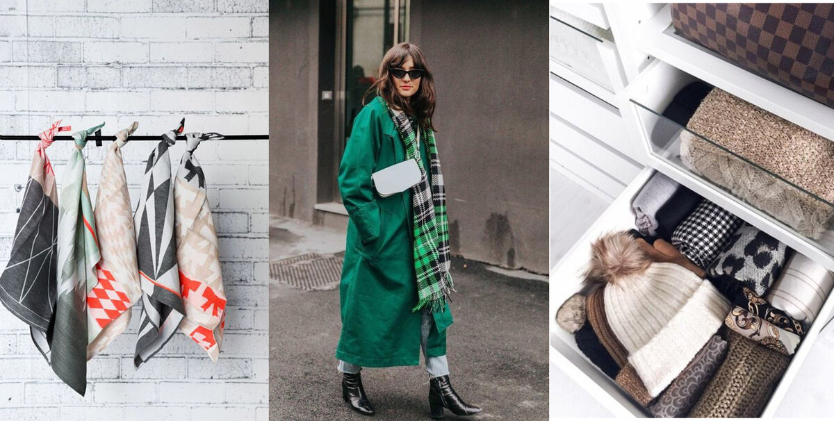 Как много из нас тех, кто любит носить шарфы и палантины, и вне зависимости от сезона, подбирает к каждому образу разные варианты платков по цвету, фактуре, в волосы или на шею, на руку или в джинсы. А для кого-то шарф лишь способ утеплиться и осень — самое время достать из дальних шкафов эти аксессуары. Но где и как хранить эти требовательные предметы гардероба, чтобы они не заминались, держали форму и приличный внешний вид, а их хозяйка могла бы перед выходом накинуть своей любимый платок и побежать по делам. Давайте разберемся, как организовать идеальное место для хранения шарфов, палантинов и платков. При наличии большой гардеробной, удобнее всего выделить средние по размеру и неглубокие полки или выдвижные ящики, чтобы скручивать платки и шарфы в “улитки”. Так аксессуары будут всегда на виду и не потеряют внешний вид. Любые ящики в комоде или шкафу в прихожей можно разделить специальными ограничителями и имитировать гардеробную. Такие органайзеры помогают эффективно использоват