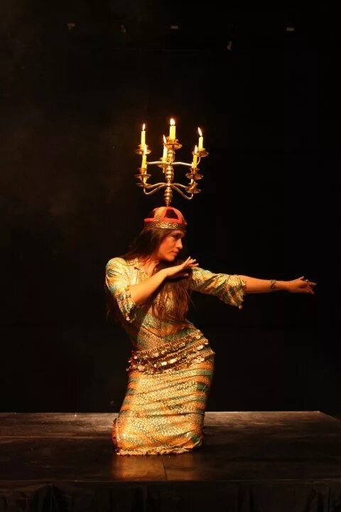 Шамадан – это исконно арабский предмет, представляющий собой канделябр с разным количеством рожков в одном или нескольких уровнях, закрепленных на металлических ободках (шапке), с помощью которых танцовщица удерживает предмет на голове. Танец с живым огнем известен на Ближнем Востоке с незапамятных времен. Как правило, специальные длинные свечи зажигали на свадебной процессии под названием «заффа», следуя по ночным улицам от дома родителей невесты к дому жениха. Впереди всех шли артисты: музыканты, певцы и танцовщицы. Перед молодыми шли дети со свечами, освещая им путь в новую жизнь. Изысканный предмет, ввела танцовщица Шафика. Это было в XIX веке. Ранее ритуальный свадебный танец исполняли, балансируя на голове свечной фонарь. Танец с шамаданом – привычный атрибут восточной свадьбы. В современных ночных клубах и ресторанах, там, где празднуется свадьба, заффу заменяет ритуал появления молодых, которые входят в зал за танцовщицей и проходят мимо гостей. Танец с этим пред