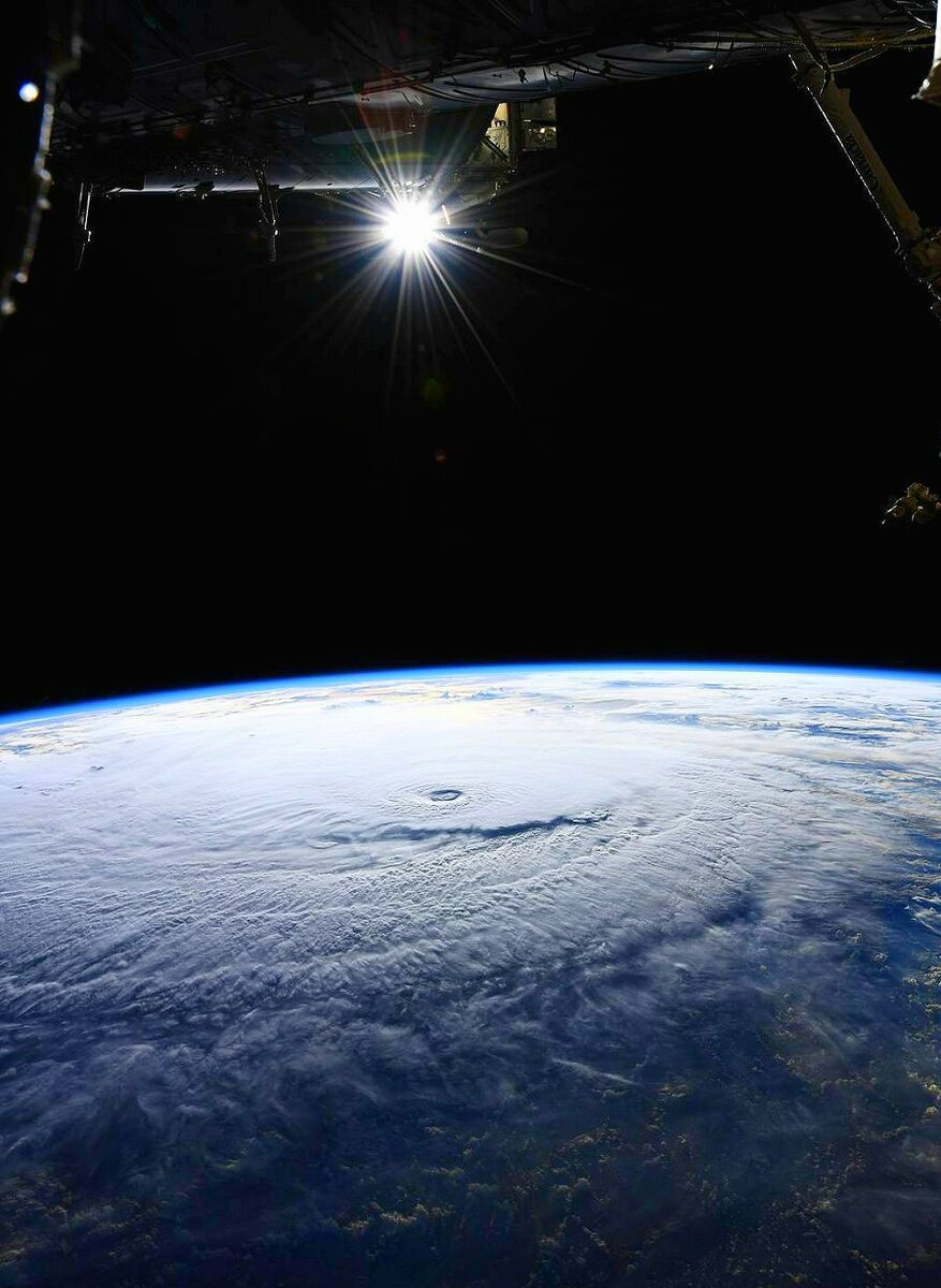 Желтый цвет солнца обусловлен оптическим эффектом строения человеческих глаз и восприятием неба. Ученые утверждают, что на самом деле солнце белое и желтым мы его видим из-за голубого неба. Если смотреть на все поступающие фотоны, наша звезда на самом деле отправляет большинство фотонов в зеленой части спектра. Наше Солнце появляется желтым для нас из-за атмосферы. И чем ярче и пронзительнее голубой цвет неба, тем желтее солнце. Так бывает, например, в ясную погоду после дождя. В пасмурную погоду солнце будет казаться белым. Вот, например, свежее фото с МКС. На нем отчетливо видно, что Солнце белое, ведь атмосфера уже не искажает его цвет. Еще, кстати, на фото приближающийся к Гавайям ураган Лейн.