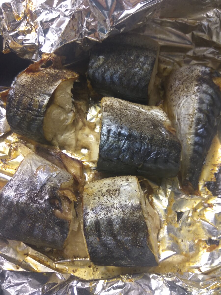 Запеченная скумбрия в духовке - очень простой и быстрый способ приготовления. Ингредиенты: свежая размороженная скумбрия - 2 шт., соль - по вкусу, черный молотый перец - по вкусу. Скумбрию разделываем, удаляем голову и внутренности, отрезаем плавники, хорошенько моем под проточной холодной водой. Режим каждую на 3-4 части. Укладываем в форму, заворачивая в фольгу, предварительно посыпав солью и молотым черным перцем. При желании можно еще добавить небольшой кусочек сливочного масла, но я не добавляю, поскольку скумбрия обычно сама по себе жирная рыба. Ставим в заранее разогретую до 200 градусов духовку на 25-30 минут. Скумбрию можно подавать с картофелем и макаронами, а также различными вариациями из овощей. Приятного аппетита!