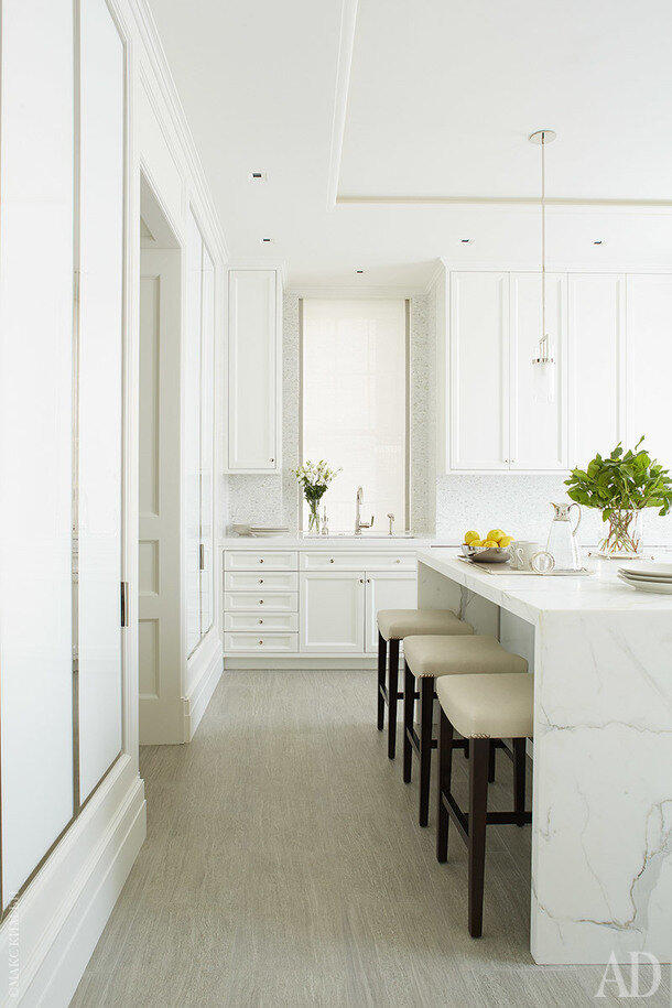 Считается, что белый — цвет минималистских интерьеров, что он холодный и немного скучный. Мы собрали десять примеров, чтобы убедить вас в обратном. 1. Квартира в Нью-Йорке Белые кухни в современных интерьерах — дело обычное, но, как демонстрирует нам Том Физант, в классическом пространстве они имеют право на существование. И заметьте: никаких аналогий с больницами и лабораториями. Филенчатые двери и мраморный остров дают ощущение уюта. 2. Дом в Сиднее Джереми Булла и Шарлин Конг из студии Alexander & Co использовали безотказный прием — черная красочная мебель и фактурный текстиль всегда эффектно выглядят на белом фоне. Но есть один секрет: архитектура пространства тоже должна быть безупречной — без высоких потолков и красивых окон эффект был бы не тот. 3. Дом в Подмосковье Дерево — тоже отличная “приправа” к белому интерьеру. В проекте Никиты Морозова контраст создается не только за счет разницы цвета, но и путем противопоставления фактур. В том числе гладких стен и рельефной обивки ме