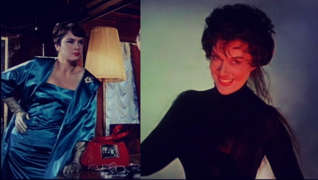 Продолжаем разговор о музыкальной комедии " Русский сувенир", снятой в 1960 году. Фильм не имел большого успеха, но основной его козырь это исполнительницы главных ролей Элина Быстрицкая (Пандора) и Любовь Орлова (Варвара). Начало можно посмотреть здесь. Сюжет истории показывает нам, что сопровождающий Пандору врач на самом деле таковым не является. Как и Пандора графиней. Её настоящее имя –Мария и она актриса, многим в прошлом обязанная этому шарлатану, который теперь использует женщину в корыстных целях, в том числе для составления компроматов. На одном из мероприятий ,одетая в ватник и повязанный по акции пионерами красный галстук, Мария слышит божественное пение французского композитора Клода Жерара (в исполнении молодого Валентина Гафта)и влюбляется в него Варвара тоже пользуется успехом у мужчин: ей из всех сил уделяют внимание иностранцы, оказавшиеся в самолете Идеально подобранные синяя кофточка с белой отделкой и рядом мелких пуговиц в стиле Шанель и молочно-белая юбка