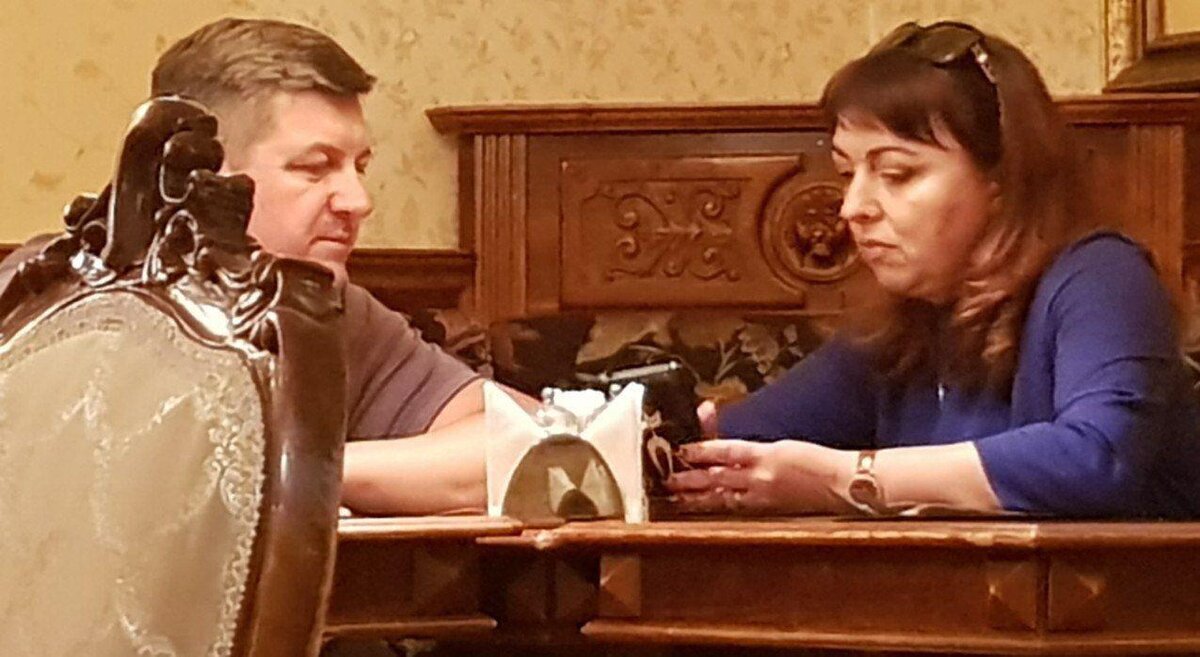Нашим читателям не надо поднимать веки - они и так всё видят. Например, прислали снимок любопытной сценки, подсмотренной в одной романтичной кафешке. На нём мы видим начальника главного идеологического управления АП Ольгу Шпилевскую, то ли мирно беседующую со своим собеседником, то ли рассматривающую некие фоточки на его смартфоне. Хотим предупредить уважаемую Ольгу Александровну, чтобы она была аккуратней с этими картинками: они могут оказаться весьма сомнительного содержания. Ведь из-за спинки стула выглядывает не кто иной, как Александр Мартыненко - главный директор телеканала "Беларусь 24". Он же бывший зампред Белтелерадиокомпании, бывший пресс-секретарь Белагропромбанка и замредактора СБ, экс-телеведущий и прочая, прочая... Однако самая громкая из его должностей - вице-муж, точнее, второй супруг бывшей первой заместительницы главы администрации президента Натальи Петкевич. Недолгая совместная жизнь с Александром, видимо, так надломила психику даже этой "железной леди", что она н