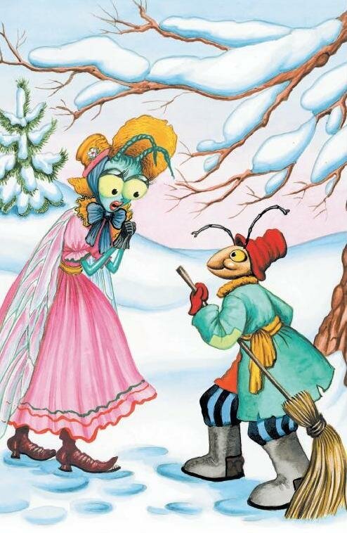 Все мы с детства хорошо знаем эту басню. Трудолюбивый муравей в любое время года усердно трудится. Стрекоза же напротив, ассоциируется с легкомыслием (фото 1,2,3). Мораль басни проста: не хочешь зимой мерзнуть и голодать - работай летом (фото 4).