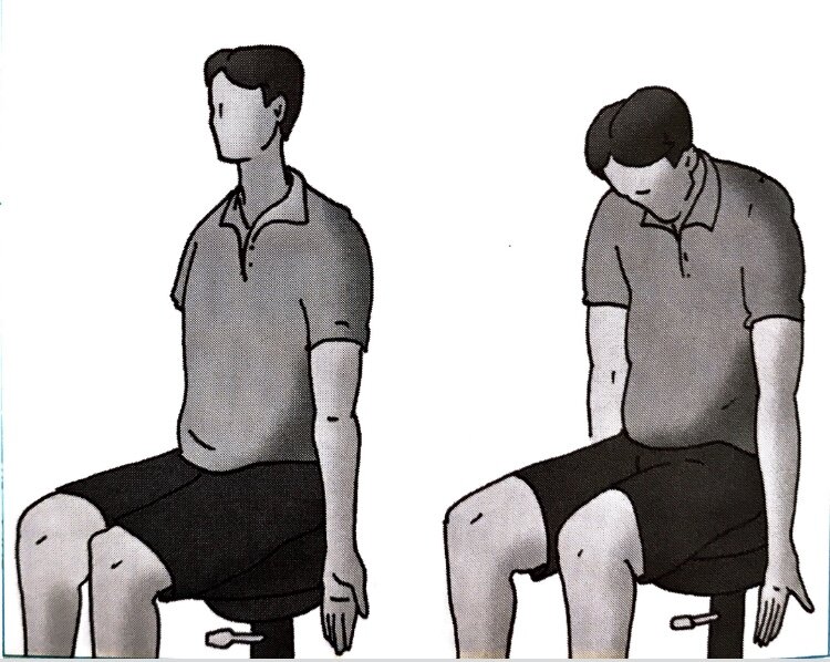 Упражнение 1: Интенсивное дыхание для растяжки мышц плеча и шеи. Сядьте расслабленно на стул. Руки прижаты к корпусу. Делайте круговые движения верхней части корпуса, голова при этом наклоняется вперёд. Поверните руки так чтобы большие пальцы направлены вперёд. Делаете глубокий вдох снова, выпрямите своё тело, голову и грудь поднимается, руки вращаются в плечевом суставе (почти на 360 градусов) , до тех пор пока ваши большие пальцы не будут снова направлены вперёд. Повторяйте упражнение медленно пять-восемь раз потом десять-пятнадцать раз. Упражнение 2: движение и растяжка Сядьте прямо, ваши бёдра раздвинуты в форме буквы V, ваши ноги прочно стоят на полу со всей подошвой. Выправляйте туловище, грудная клетка приподнимается, взгляд направлен перед собой. Теперь. Ложите ладони на уровне груди, локтями в стороны, кончиками пальцев вверх. Задержитесь в этом положении десять секунд затем сделайте перерыв в десять секунд. Повторите упражнение три-пять раз,желательно чере