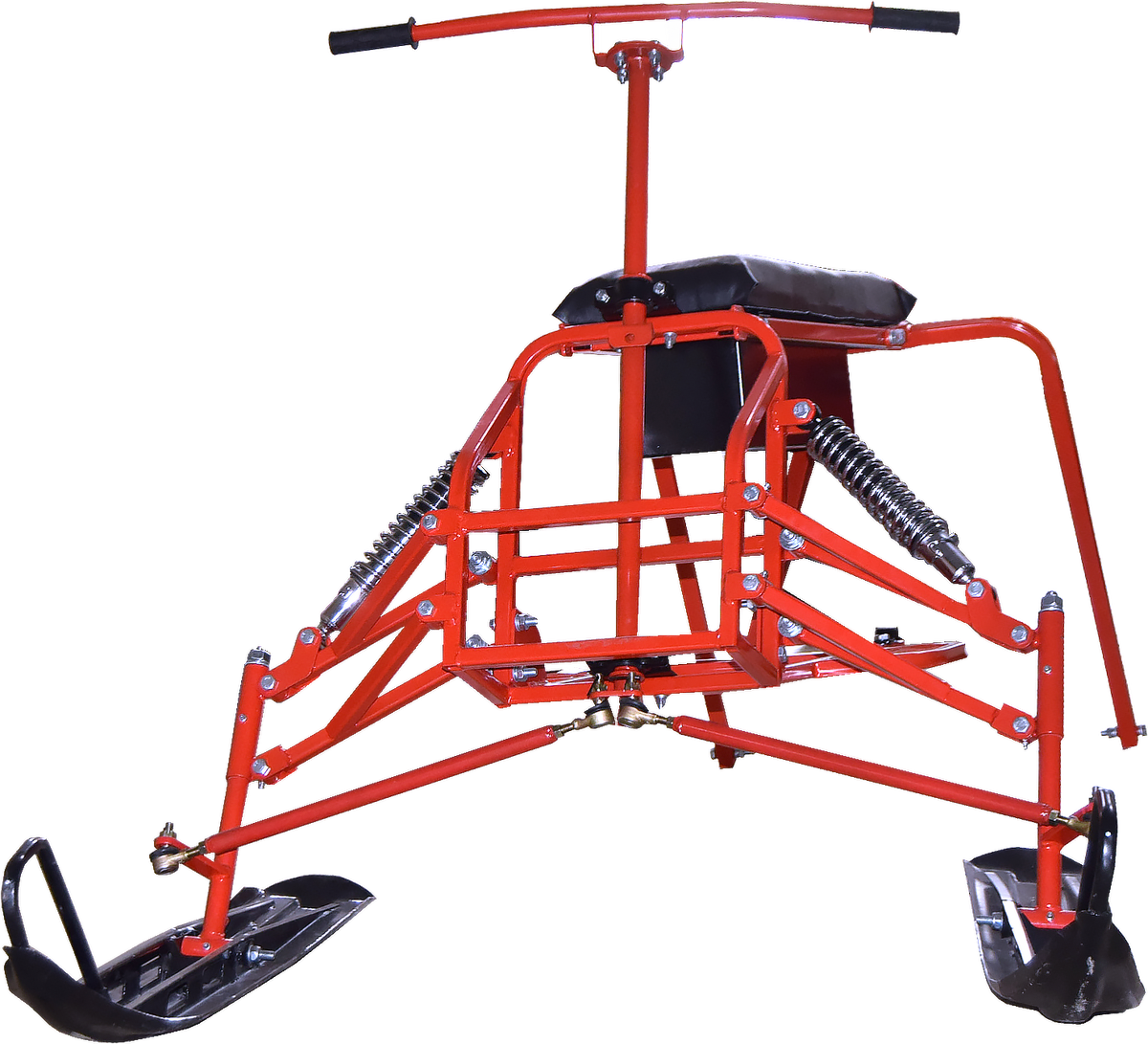 Лыжный модуль для мотобуксировщиков Forza представляет собой раму с рычагами подвески, металлическими лыжами, рулем и сиденьем.