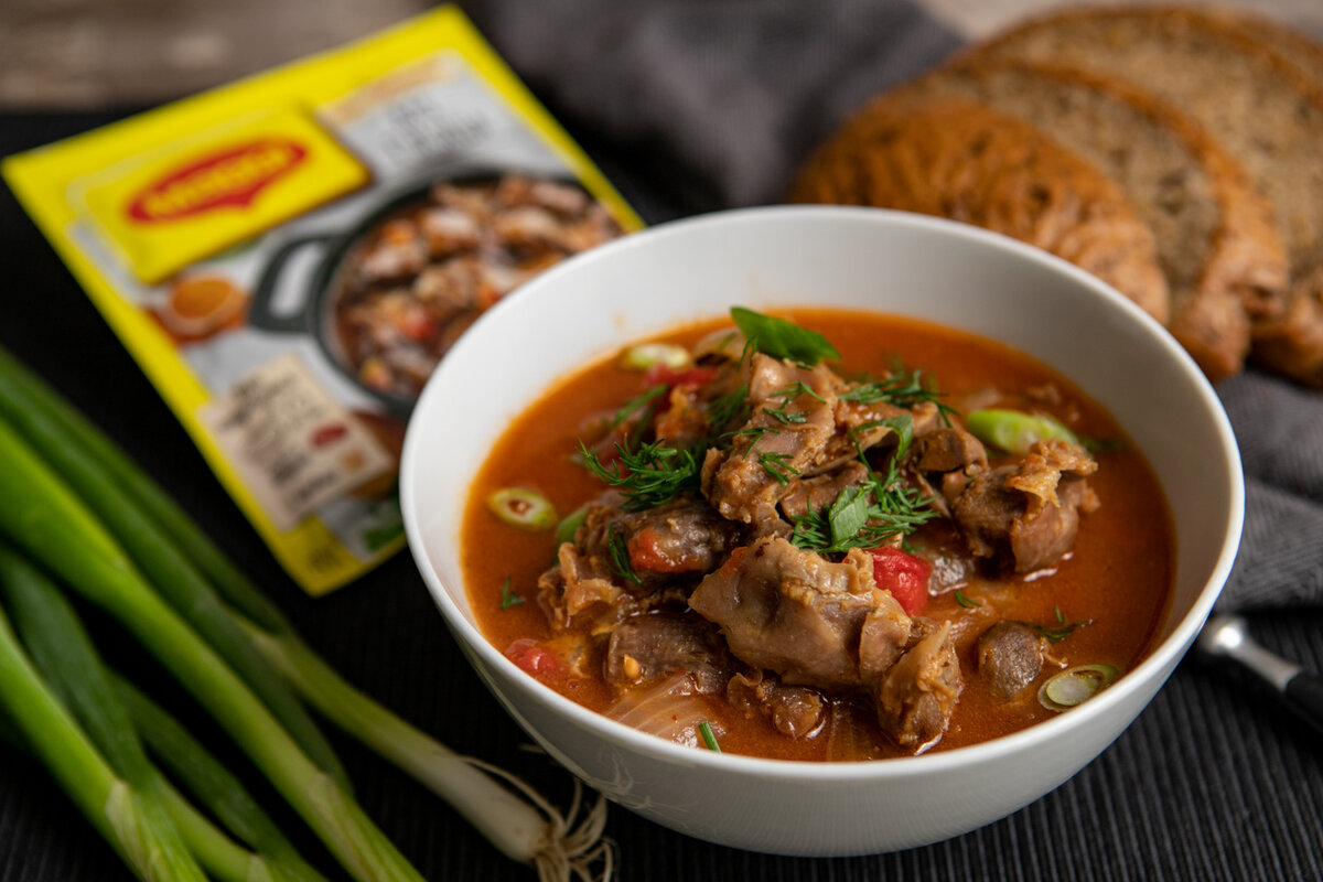 Куриные желудки важно как следует промыть и очистить от пленок. По этому рецепту к желудкам можно добавить куриные сердечки. Ингредиенты Куриные желудки-500 гр MAGGI® НА ВТОРОЕ для гуляша – 1 пачка Вода- 350 мл Лук-150 гр Масло растительное- 30 гр Укроп-10 гр Зеленый лук-10 гр Розовый перец –1 гр Острый перец-3 гр Болгарский перец-100 гр Помидоры в собственном соку- 100 гр Как приготовить Подготовить и очистить овощи. Нарезать лук кубиками. Болгарский перец нарезать кубиками. Куриные желудки промыть. Обжарить лук ,болгарский перец и желудки до полуготовности. Добавить MAGGI® НА ВТОРОЕ для гуляша, воду, специи, острый перец, нарезанный колечками, и помидоры в собственном соку. Тушить до готовности. Подать горячим , при желании украсить свежей зеленью. В качестве соуса хорошо подойдет сметана. Приятного аппетита! : ) Заранее благодарим за поставленные лайки! Комментируйте, готовьте с удовольствием и делитесь своими результатами. Сохраняйте в соц.сетях. Идеи всех интересных рецептов