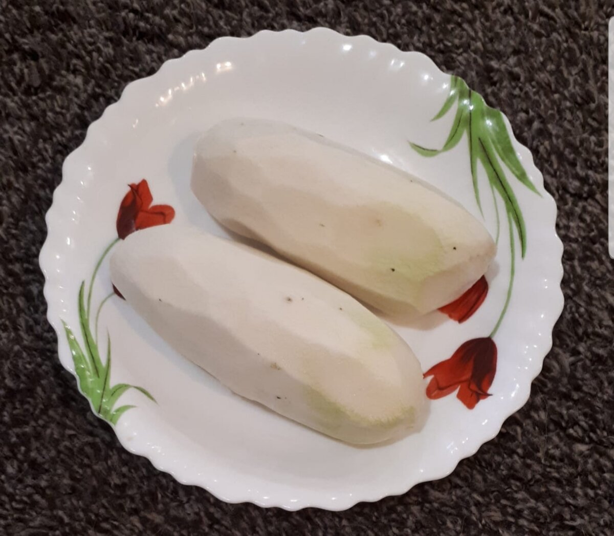 Пока ходила по магазинам, выбирая продукты увидела на прилавке редьку дайкона. Когда стояла думала, покупать или не покупать, в голову пришла фантазия, какой цветок я буду вырезать. На день рождения дочери подарили букет из лизиантусов, решила вырезать такие цветы. Для тех, кто не знает, это маленькие розочки с двухцветным бутоном. Пришла домой почистила редьку и начала вырезать, одна редька попалась внутри пустая, сверху при этом нормально выглядела, но такое бывает. В итоге у меня получилось три цветка. Чтобы дополнить свой букет вырезала еще из болгарского перца. Болгарский перец всегда лежит в холодильнике и из него быстро можно вырезать цветы. Если красный цветок из перца добавить к белым, то очень красивый букет получится. Букет оформила свежими листьями, такой букет украсит любой стол. Автор: Вера Желтова