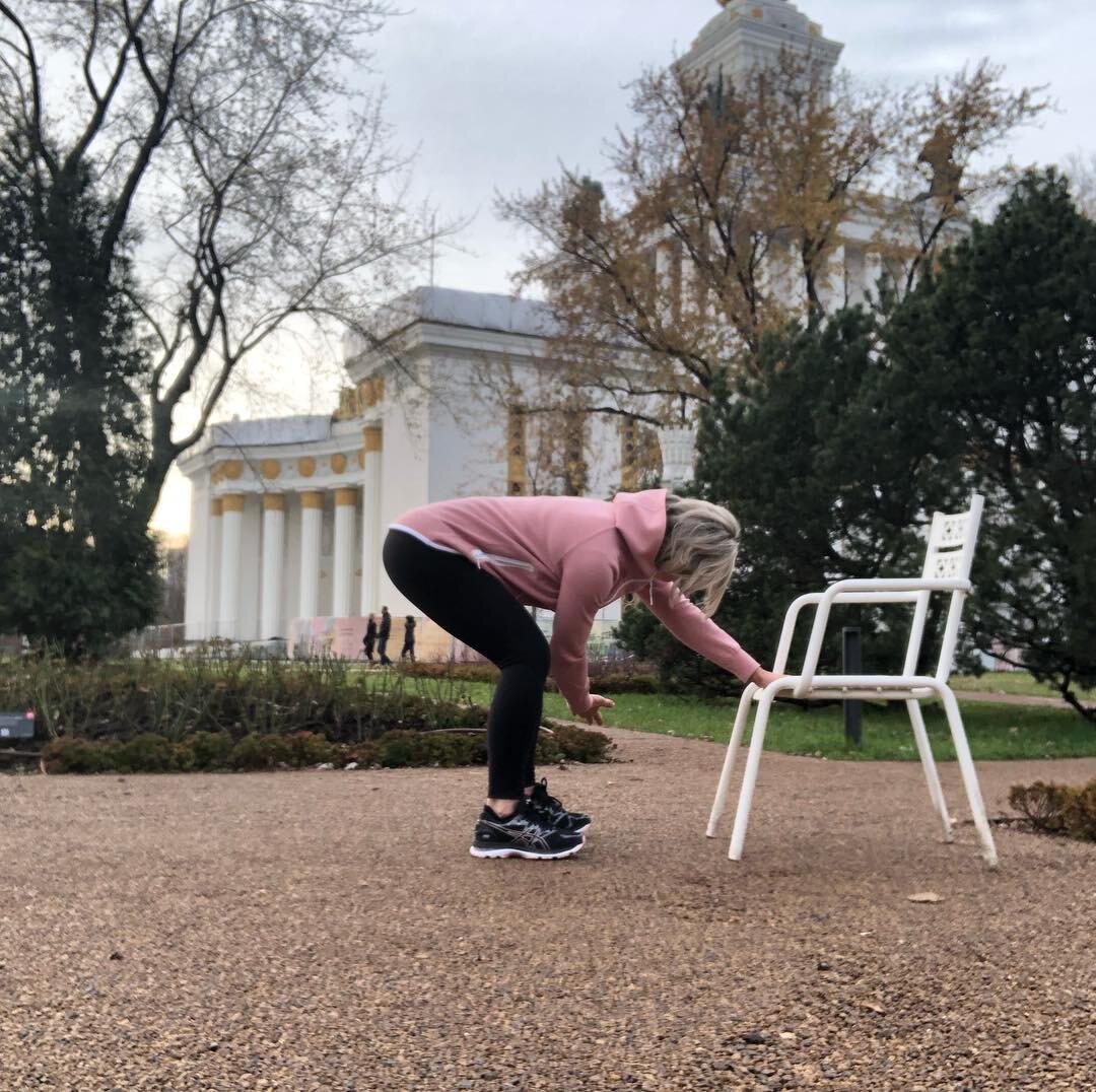 Болит спина после или во время ходьбы, это частая жалоба, которую я слышу. Если это происходит и с вами, растянитесь, чтобы убрать лишнее напряжение. Положите руки на скамейку и тянитесь ягодицами назад.