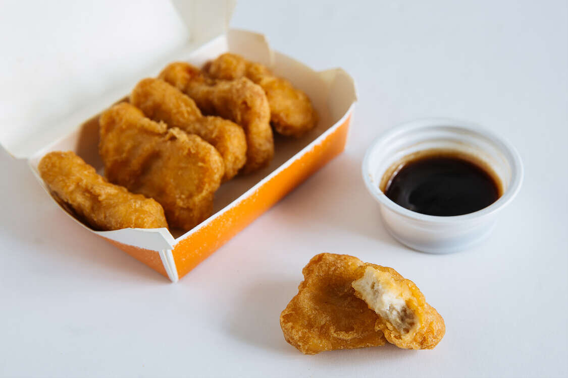 - Готовые наггетсы выкладываем на бумажные палатенца ,промокаем и выкладываем на тарелку