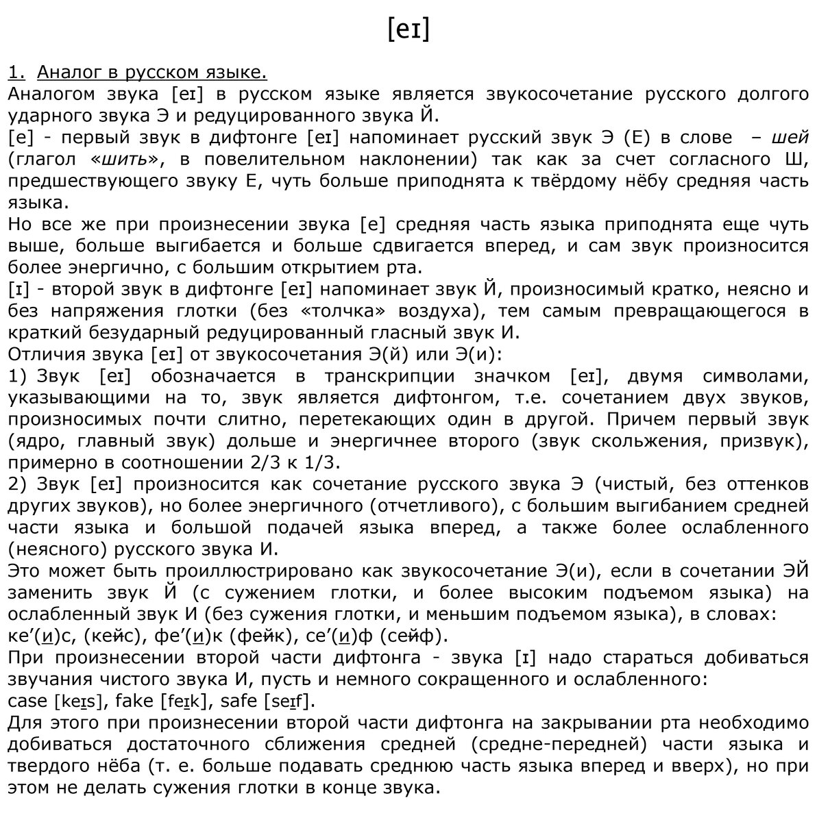 Дифтонги - это комбинации уже известных нам звуков, но немного измененные из-за их объединения как бы в один звук. Поэтому наряду с разбором дифтонга опишем то, как нормативное индивидуальное произношение каждого входящего в дифтонг звука изменяется при его включении в конкретный дифтонг. Полезные ссылки Послушать и воочию увидеть произношение звука [ eɪ ] в американском английском языке, рассмотреть положение и работу органов речи, потренироваться в произношении, и узнать побольше о произнесении звука [ eɪ ] Вы сможете пройдя по ссылке: https://rachelsenglish.com/english-pronounce-ay-diphthong/ Веб-сайт проекта Rachel's English: rachelsenglish.com принадлежит, пожалуй, самому лучшему преподавателю фонетики американского варианта английского языка - Рэйчел. Вы найдете не только видео-урок: English: How to Pronounce AY [eɪ] diphthong: American Accent размещенный на YouTube, но и текстовую распечатку урока на английском языке на страницах сайта. Смотрите также еще один