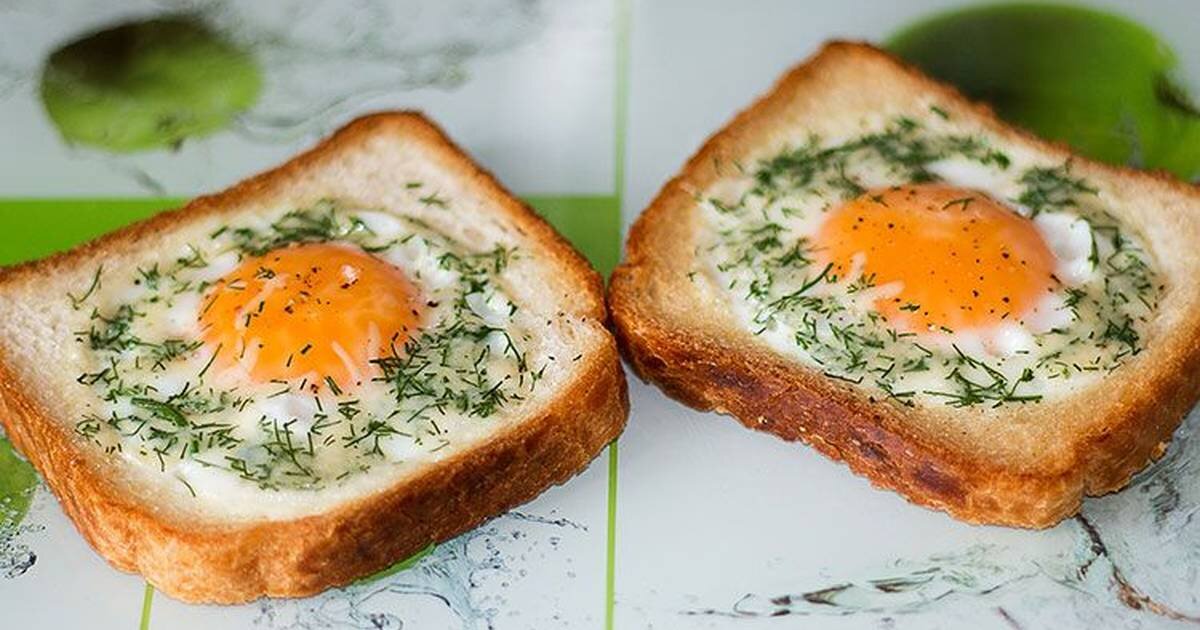 Ингредиенты: Приготовления: Поставить сковороду налить масло, пока наклоняется берём одно яйцо разбиваем в миску, солим и размешиваем. Берём хлеб и вырезаем серединку, обмакиваем в яйце и на сковороду и разбиваем яйцо в середину хлеба. Поджариваем и выкладываем на тарелочку, украшаем зеленью. Приятного аппетита!!! Можно также к хлебу пожарить колясочку колбаски. Быстро,вкусно и сытно...