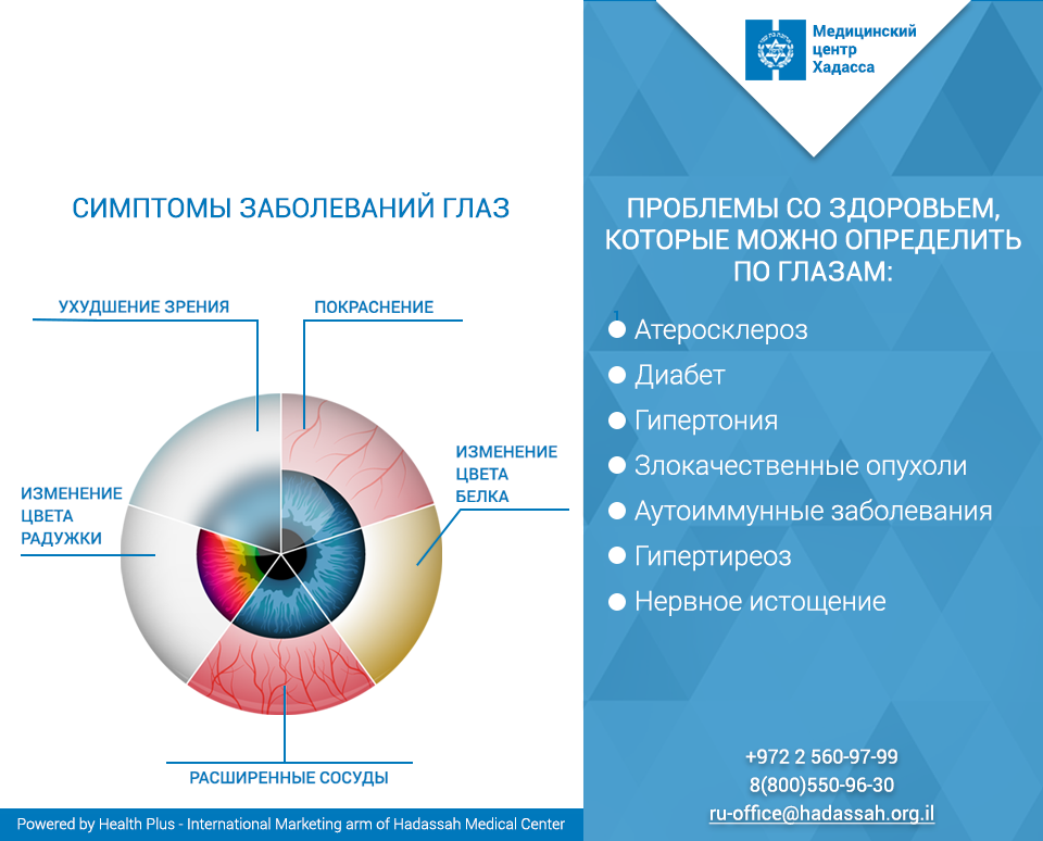 Вышеперечисленные болезни - лишь малая часть того, что могут рассказать глаза о состоянии здоровья. Если вам или вашим близким требуется диагностика заболеваний глаз и сопутствующих патологий, инновационное лечение и профилактика возможных осложнений, обсудите возможности Хадассы с медицинским экспертом клиники. Для получения консультации отправьте заявку через официальный сайт клиники “Хадасса”. Заполните форму обратной связи, указав всю необходимую информацию. В течение рабочего дня с вами свяжется специалист, с которым вы обсудите все нюансы: предварительную консультацию, время приема и посещения, диагностические процедуры и план терапии.
