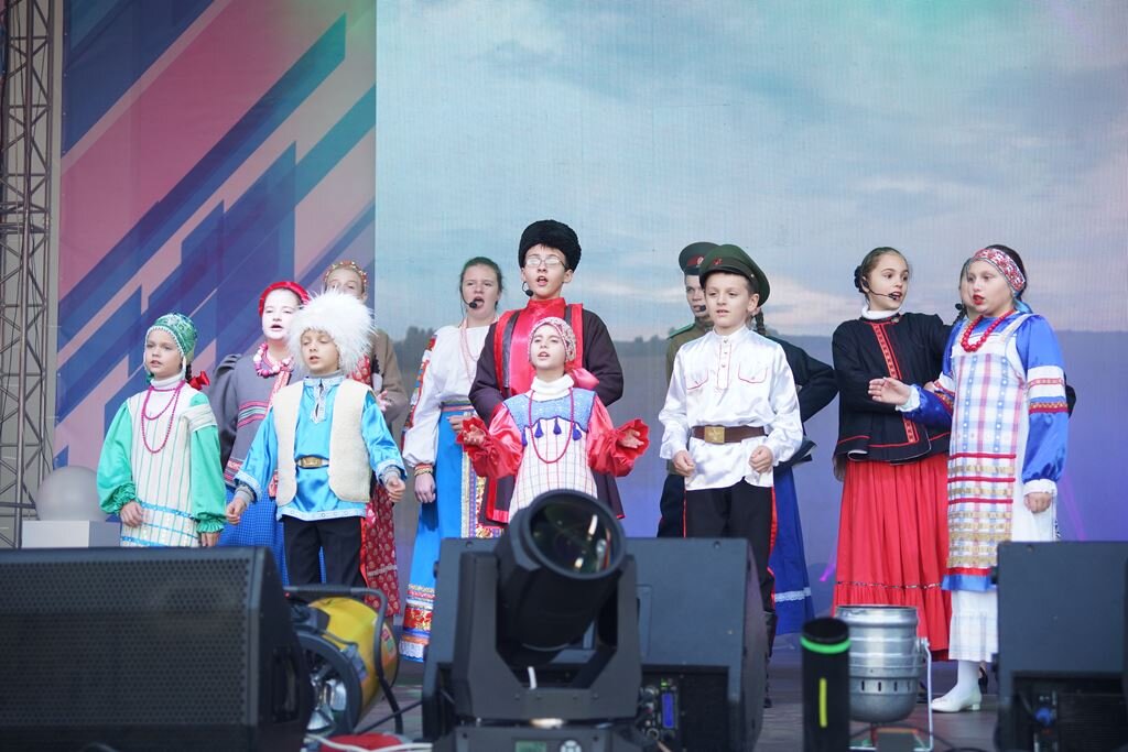 Театральная площадь города Курска с 16.00 до 18.00 часов была отдана детям. Своим творчеством учащиеся учреждений дополнительного образования города Курска поздравляли курян с праздником.