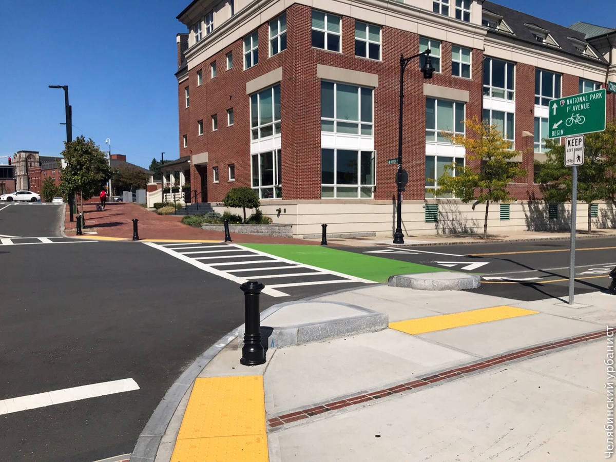 Приехали в Бостон. Первые впечатления — невероятная ухоженность. Я не знаю почему и как они этого добиваются. Но здесь все вычищено и подстрижено. Местные рассказывают, что стыдно иметь неподстриженный газон. Везде безбарьерная среда. Бетонные тротуары понравились — отличная альтернатива плитке: долговечные, нарядные, можно делать сложные примыкания. Здесь инвалиды на колясках живут полноценной жизнью: ходят в кафе, общественные пространства, посещают все городские мероприятия. На улице очень комфортно находиться: разрешенная скорость в городе не больше 50 км/ч, водители аккуратно ездят, пропускают пешеходов даже на красный. Вообще машин не так много, и переходят улицы, где хотят. По факту, мы, как пешеходы, почти никогда не ждали светофора. Бостон аккуратнее и приятнее Нью-Йорка. Почему здесь каждый тротуар доступен для инвалидов? В чём секрет? Как такой подход повторить в России?