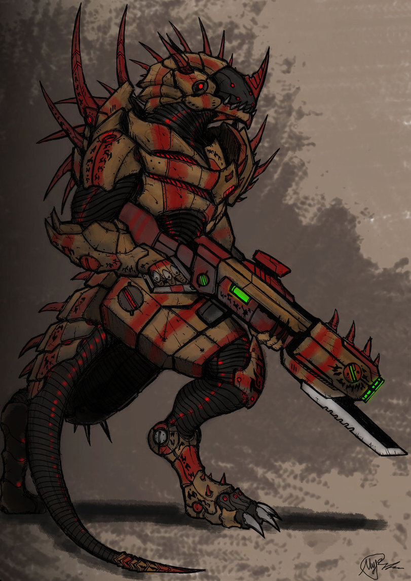 Тареллианские государства признают власть империи Тау. Они объединилсь с Тау ради борьбы против общего врага — Империума. Псы-солдаты вооружены высокотехнологичным оружием тау, оружие их собственного производства по мощи примерно соответствует лазгану и в целом примитивно, хотя некоторые образцы сплавов очень интересны для Адептус Механикус.