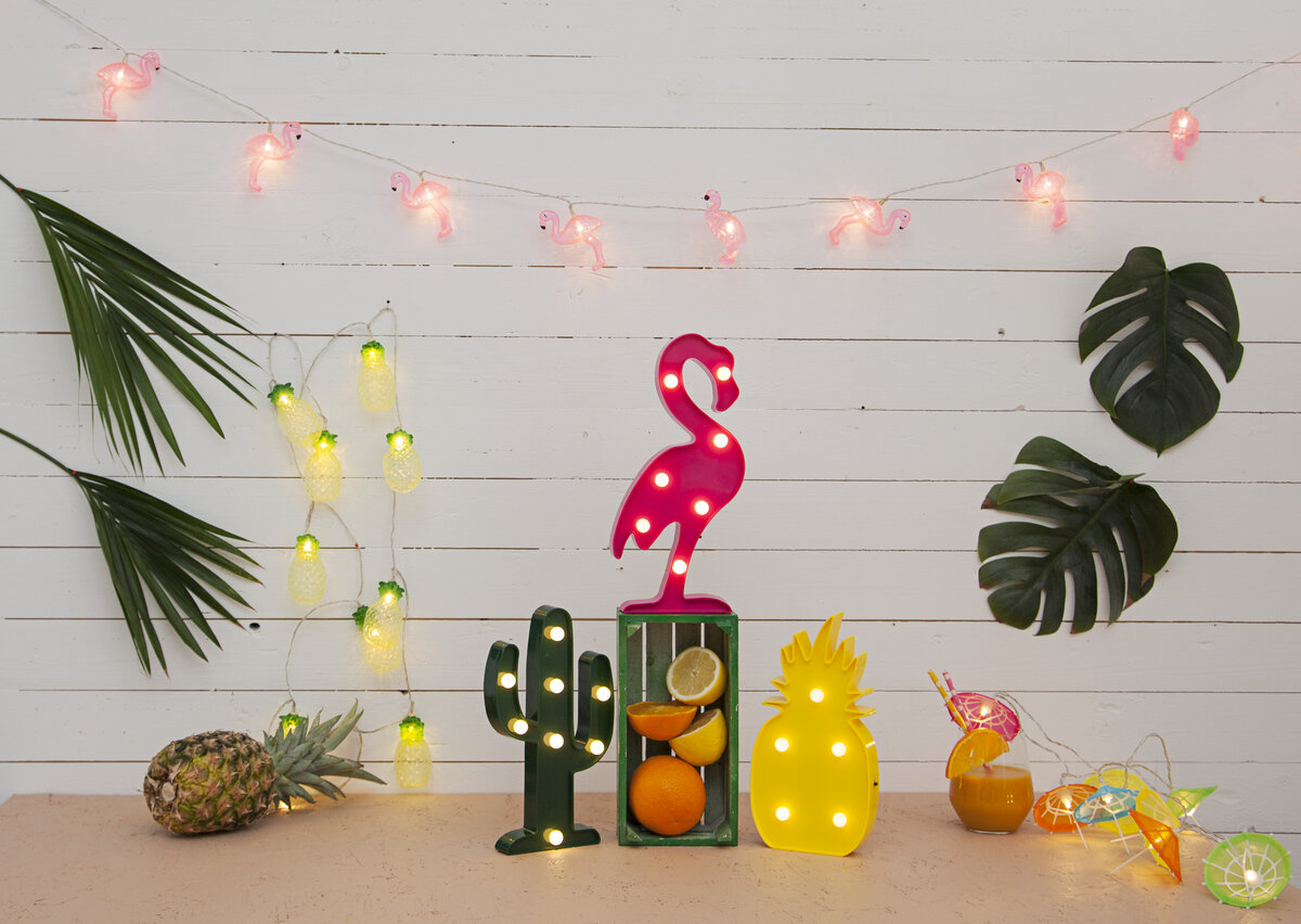 - Мини-гирлянда на батарейках с разными фруктами - ананасами, виноградом, клубникой, бананами - нарядное и забавное украшение. С ним малыш точно не заскучает ни на минуту. Каждый взгляд на красочный, аппетитный аксессуар - очередная улыбка ребенка. Колоритную светящуюся нить можно повесить на большое растение или комнатное дерево. Будет казаться, что на фикусе или финиковой пальме волшебным образом созрели неожиданные плоды.