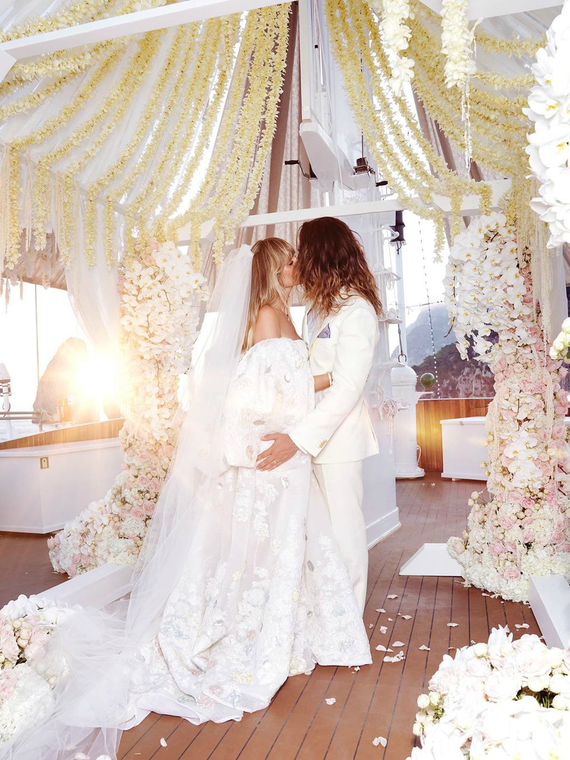 Хайди Клум наконец поделилась подробностями свадьбы с Томом Каулитцем — по слухам, пара связала себя узами брака еще в феврале, однако отпраздновала торжество только в начале августа. Свадьба прошла на знаменитой яхте Christina O — на ней выходила замуж Жаклин Кеннеди. Несмотря на выбор такого значимого судна, сама церемония прошла просто и очень весело, признается Клум в интервью People. Хайди Клум «Это было очень красиво. Мы были в Италии три недели. Я до сих пор ношу объемные вещи, потому что я слишком много ела и веселилась!» Яхта находилась у берегов Капри — Хайди и Том праздновали свадьбу до самого утра в кругу близких. Но сейчас звезда признается, что хотела бы пригласить больше людей на свой праздник. Хайди Клум «Если бы только мы могли пригласить больше гостей! Было тесновато, но мы просто не смогли вместить людей» На свадьбе Хайди была в свободном платье с открытыми плечами — волосы невесты были распущены. Клум даже не надела туфли — модель считает это своим лучшее решение.