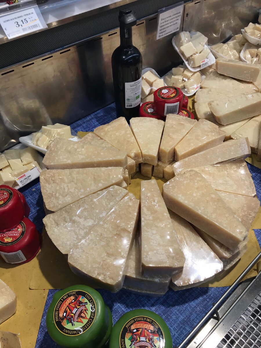 Всем привет! Хочу поделиться с вами своим гастрономическим открытием. Я вообще не фанат сыров, но во время недавнего путешествия по Италии случайно обнаружила совершенно потрясающий сорт. У нас такого никогда не видела. Речь идёт о сыре Grana Padano, это твёрдый сыр вроде пармезана, но более соленый и большей выдержки - в итальянских сетевых магазинах продаётся обычно 18-24 месячный сыр. Узнать в магазине его довольно просто: он бывает или большими кусками на развес, как на картинке выше, или порезанный на квадраты. Ещё часто продаётся в таких же квадратах, только каждый завернут в фантик, как конфетка. Стоит такой сыр в районе 18 евро за килограмм или 2-3 евро за «кулёк». Кстати, нередко бывает Грана Падано и хлопьями, и тертый (можно посыпать спагетти, например), но мне больше понравился крупно наколотый. Вкус потрясающий! К тому же, сыр очень сытный. А какой ваш любимый сыр?