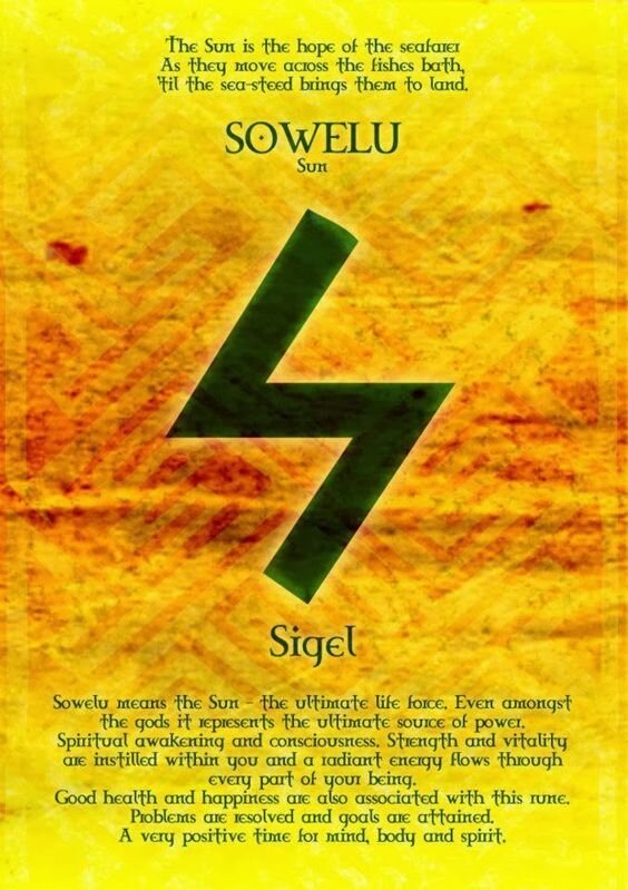 Руна Соулу (Сол, Совуло) – это символ Солнца и солнечной энергии. Она осуществляет подпитку необходимыми силами и излучает силу и энергичность. Если вы обнаружили собственный, персональный источник Силы, то Соулу поможет вам использовать и применять эту Силу в нужном русле. Соулу воплощает истинное Я, самосознание, волю и исцеление от слова «целостность», истинную природу вещей, возможность самого невероятного, жизнелюбие, упрямство, умение радоваться жизни и быть счастливым. Также она усиливает действие других рун. Форма этой руны говорит нам о том, что, помимо сияния Солнца, она может воплощать молнии Тора, неся возмездие. Соулу – это опора и подсказка на Пути, а также подъём жизненной энергии. В переложении на арканную тематику Соулу соответствует, прежде всего, разумеется, Аркану Солнца. Также она созвучна Аркану Мага и Башне (в аспекте возмездия). Среди Младших Арканов эта огненная руна соответствует масти Жезлов в целом, и особенно королевской чете, а также Единице Жезлов, Тройке