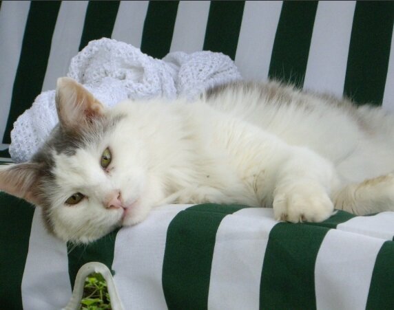 Я не сумасшедшая (хотя..... а даже если и так:))) мне все-равно) но в моей жизни этот кот был самым верным, самым преданным, самым умным и самым любимым мужчиной, умеющим прощать, умеющим любить не смотря ни на что, терпевшим все мои выходки. Он был со смой с самого первого своего дня и до последнего. Но начну с начала. Была у меня когда-то подруга а у нее кошка, обычная, простая, полосатой масти с белой манишкой и тапочками. И звали кошку Лизавета. Случилось как-то Лизоньке согрешить на даче с невероятным красавцем ангорской породы. Дон Жуан приходил из леса. Был он диким, свободным странником. В высокопородности кота я конечно глубоко сомневалась, но дело было в 1993 году. Тогда и людям-то несладко жилось, а котам тем-более. Возможно его кто-то выгнал, но факт остается фактом - кот выглядел роскошно! Белый, пушистый, с серыми пятнами. Правда от дикой жизни выглядел он слегка потрепанным, но в глазах всегда читалась страсть и харизма. Вскружил красавец Лизавете голову и после этог