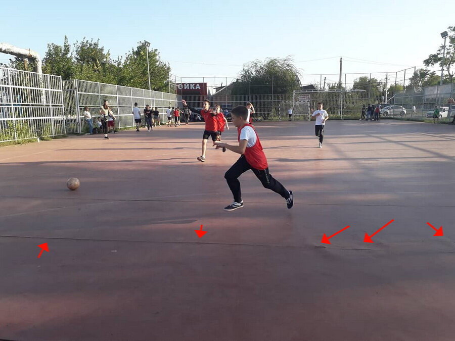 Посмотрите на фото покрятия спортивной площадки. Прошла неделя по