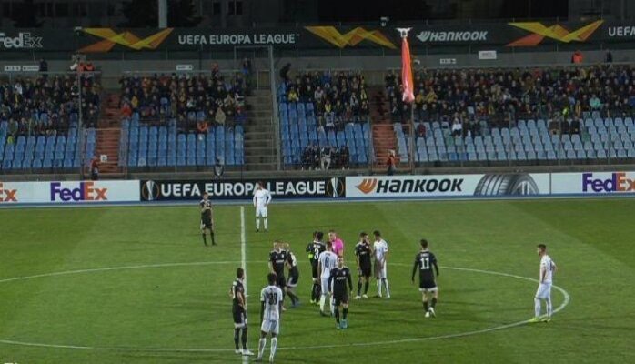 Avropa Liqasının qrup mərhələsi çərçivəsində keçirilən "Qarabağ"la "Düdelanj" matçında təxribata yol verilib. Avropa Liqasının qrup mərhələsi çərçivəsində keçirilən "Qarabağ"la "Düdelanj" matçında təxribata yol verilib. Axar.az xəbər verir ki, "Qarabağ" ikinci qolu rəqib komandanın qapısından keçirdikdən sonra meydanın ortasında dron vasitəsilə qondarma Dağlıq Qarabağ rejiminin bayrağı dalğalandırılıb. Hazırda davam edən matçda fasilə yaranıb. "Qarabağ"ın oyunçuları təxribata etirazlarını bildiriblər. Hakim matçı qeyri-müəyyən müddətə təxirə salıb. *** Müəyyən təhlükəsizlik tədbirləri görüldükdən sonra "Düdelanj"la "Qarabağ"ın matçı artıq bərpa edildi. *** Matçın bərpa edilməsinin səbəbi açıqlanıb. Lüksemburqun İdman nazirinin üzrxahlığından sonra görüş bərpa edilib. Oyun qaldığı yerdən, 31-ci dəqiqədən etibarən oynanılıb. Hazırda görüşün ilk hissəsi başa çatıb.