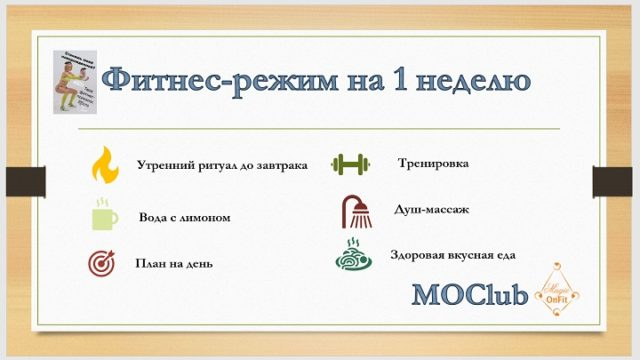 Если вы хотите встроить режим ЗОЖ в свою жизнь, тогда начните планировать неделю с выходных, прописывая рабочие и выходные дни. Как только вы начнете видеть план, или вывесите план недели на видном месте, или запрограммируете напоминалки на телефон, ваш мозг, организм начнет получать задание реализовать задуманное. Чтобы придерживаться новых привычек: ежедневных физических ритуалов - на пресс, тренировки, прогулки, и здоровый выбор в еде, подготовьтесь! Закупите необходимые продукты, выбросьте нездоровые, подготовьте спортивку и продумайте время тренировок. За годы ЗОЖ я нашла свой режим: утром делаю ритуалы на пресс, ягодицы, могу сделать массаж, а тренируюсь вечером - 20-25 минут. Еда 2 раза в день занимает 1 час с готовкой ( если дни более интенсивные - могу есть заготовки за 5-10 минут). ЗОЖ - это ритм дня, оптимизация, вокруг которой строится вся деятельность. На тренировки и еду времени нет - они просто есть, встроены, будут всегда и связаны между собой. Я говорю, что кормлю
