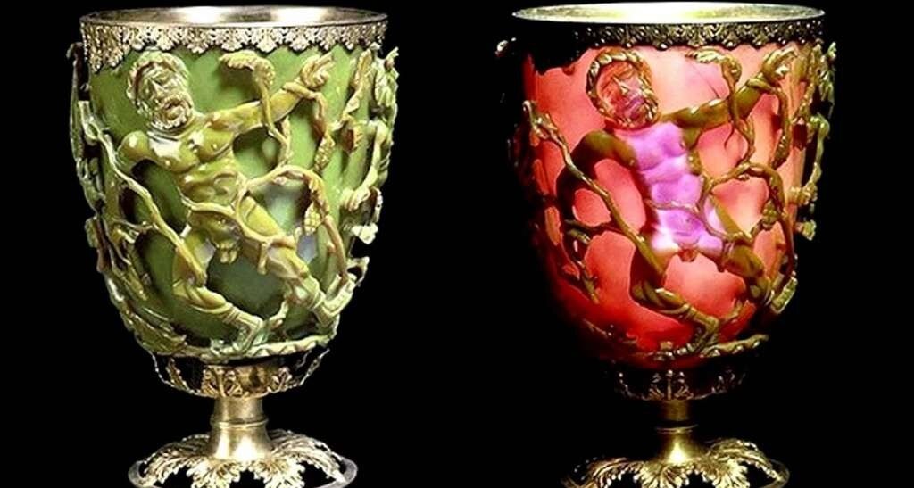 Таким примером удивительных технологий древности можно считать кубок Ликурга. Эта чаша выполнена из тончайшего золота раскатанного в тончайшие пластины в несколько микрон. Еще 50 лет повторить такое не было технических возможностей. Так как и откуда появился этот кубок по сей день неизвестно. Но его судьба известна с 1845 года. Самым удивительным является способность кубка под различными углами менять цвет. Эта способность у стекла появляется только в случае напыления золотом и серебром. Современные ученые только в 90-х годах разобрались с составом стекла, из которого и изготовлен этот шедевр. При чем кубок Ликурга не единственное изделие из дихроичного стекла. Известно несколько подобных шедевров, но концентрация серебра и золота в них колеблется. Исследователи пришли к выводам, что технологии были несовершенны. Вот только подобные технологии появились только в 20 веке.