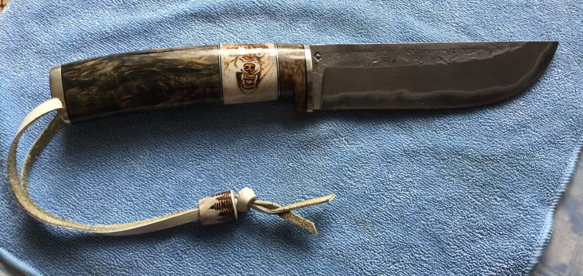 Если речь заходит об удивительных и действительно не простых инструментах охотников – охотничьих ножах, то обязательно стоит упомянуть творения братьев Сандер! Бренд Sander – это российская компания, специализирующаяся на создании ножей ручной работы. Их продукция ориентирована на использование в условиях «outdoor» и является продукцией высочайшего качества. Братья Сандер изготавливают ножи из различных сталей, как моно, так и дамаска или ламината. Для изготовления рукоятей используется древесина различных пород дерева. Также, существуют ножи с рукоятями из рога или кожи. Все их ножи – это эксклюзивные изделия. Кстати, ножны шьются отдельно для каждого ножа (с последующей подгонкой конкретно к изготовленному ножу). При их пошиве производитель использует технологию формования по изделию. Ножны могут быть украшены этническими рисунками. Из всего разнообразия ножей, в этой статье речь пойдет о следующих трех моделях, но ссылку на магазин Forest-Home, где представлен огромный ассортимен