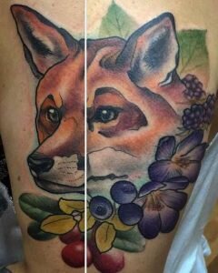 Одно из наиболее изысканных решений – нанесение татуировки лиса в стиле графика или акварель. Каждый из этих вариантов по-своему привлекателен. Так, вы можете стать обладателем тату, излучающей нежность, легкость и весеннее настроение, или отчетливо-сосредоточенного изображения, которому свойственны выразительность и насыщенность.