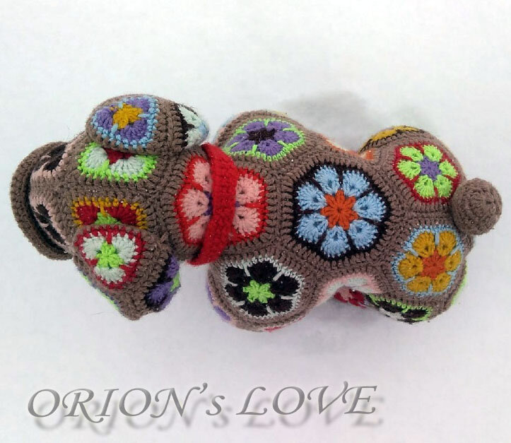 При сборке пару раз ошиблась и долго не могла понять, как собираются ноги. Какое-то время помучившись, все-таки я справилась. Еще недочетами считаю глаза, а точнее нужно было в этой области использовать мотивы со светлыми оттенками пряжи, так как глазки плохо видно.