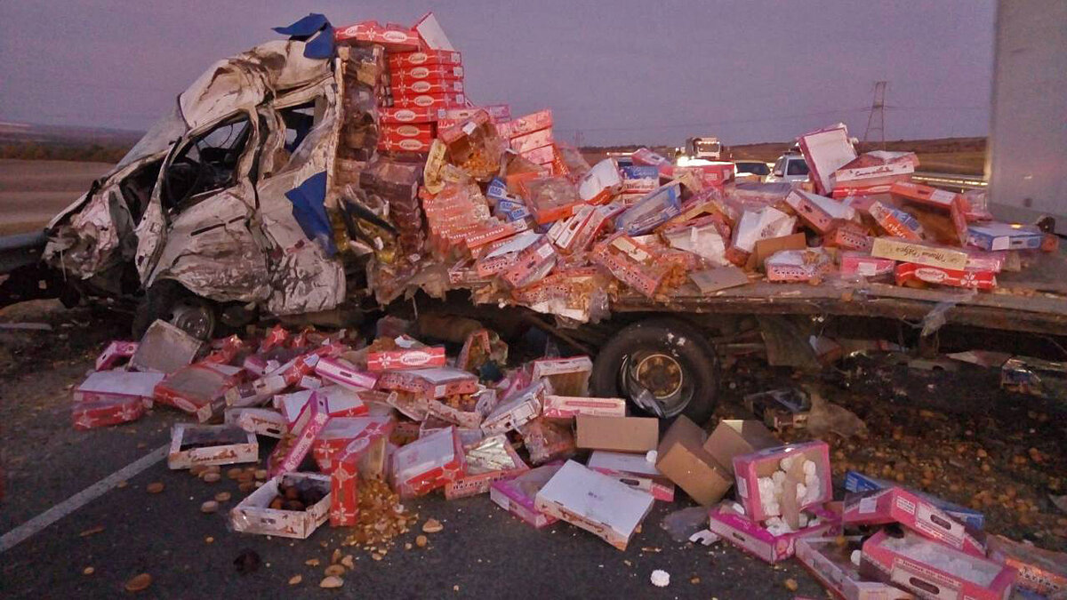 Утро пятницы для двоих человек в Крыму стало последним. В районе 4 часов утра на трассе «Таврида» в легковушку и гружёную печеньями ГАЗель влетела фура.