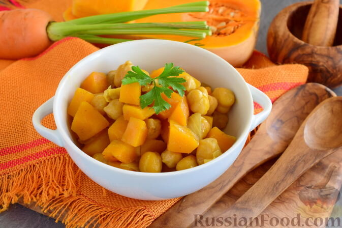 Нажмите, чтобы увидеть рецепт полностью. Любителям пряных блюди и сытных овощных гарниров наверняка понравится овощное карри из тыквы с нутом. Благодаря нуту блюдо получается довольно питательным, а чесночок придает приятную пикантность.