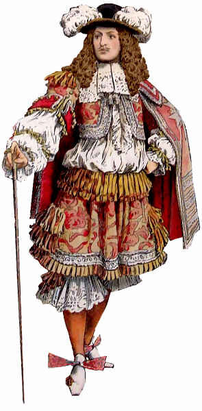 Скучная мужская мода в черных, серых или коричневых тонах, унылые брюки и пиджаки, такие же унылые ботинки — все это вошло в моду и стало привычной частью мужского образа только в XIX веке. Раньше мужики себе в цветах, кружевах и оборочках не отказывали. Особенно не отказывали они себе в веках XVII и XVIII в законодательнице моды Франции. В первой половине XVII века в моде вообще было довольно занятное для современного мужчины сочетание одежды — крепко облегающие ногу чулки, пышная юбочка и туфли на каблуках. Не верите? Смотрите сами! На самом деле, на это картине классический и почти привычный нам костюм-тройка. Точнее, его прообраз: штаны, белая рубашка, жилет и плащ, который потом станет сюртуком, а потом — и пиджаком. Штанов, правда, на этой картинке аж двое. Нижние светлые и пышные, и верхние — даже не штаны, а юбка — это рингравы. Они пышно украшены лентами и кружевами. Под нижними штанами мы с вами видим кружевные подвязки, которые не только делают вид, что они окончание пант