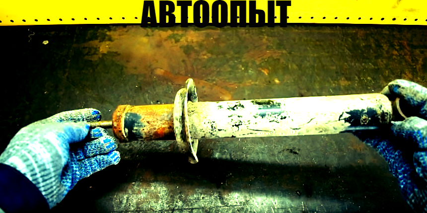 Если стойка разборная, то вам повезло, мороки меньше. В моем случае стойка была с ВАЗа, поэтому пришлось ее распиливать. Разбираем все полностью, и оставляем один лишь шток.