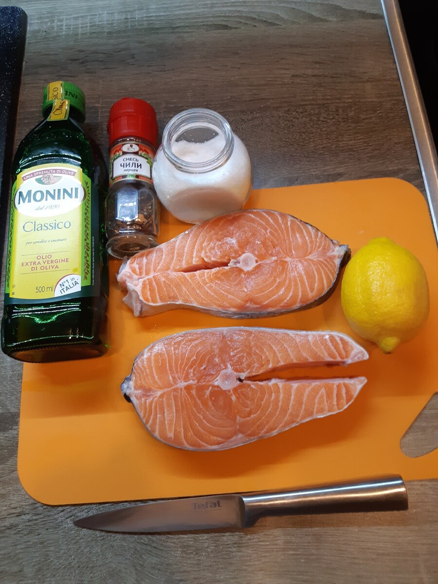 Доброго времени суток друзья! Сегодня приготовим стейки из лосося на электрогриле. Для этого нам понадобится: - Два хороших стека из лосося толщиной два с половиной сантиметра. - Масло оливковое - Смесь перцев чили - Лимон - Соль Смазываем лосось с обоих сторон маслом посыпаем, солью перцем и немного сбрызгиваем лимонным соком. Оставляем на двадцать минут. Разогреваем гриль до максимума, Выкладываем лосось. Оставляю примерно на семь минут. И все готово. Всем Приятного аппетита и хорошего настроения. Спасибо что читаете до конца.