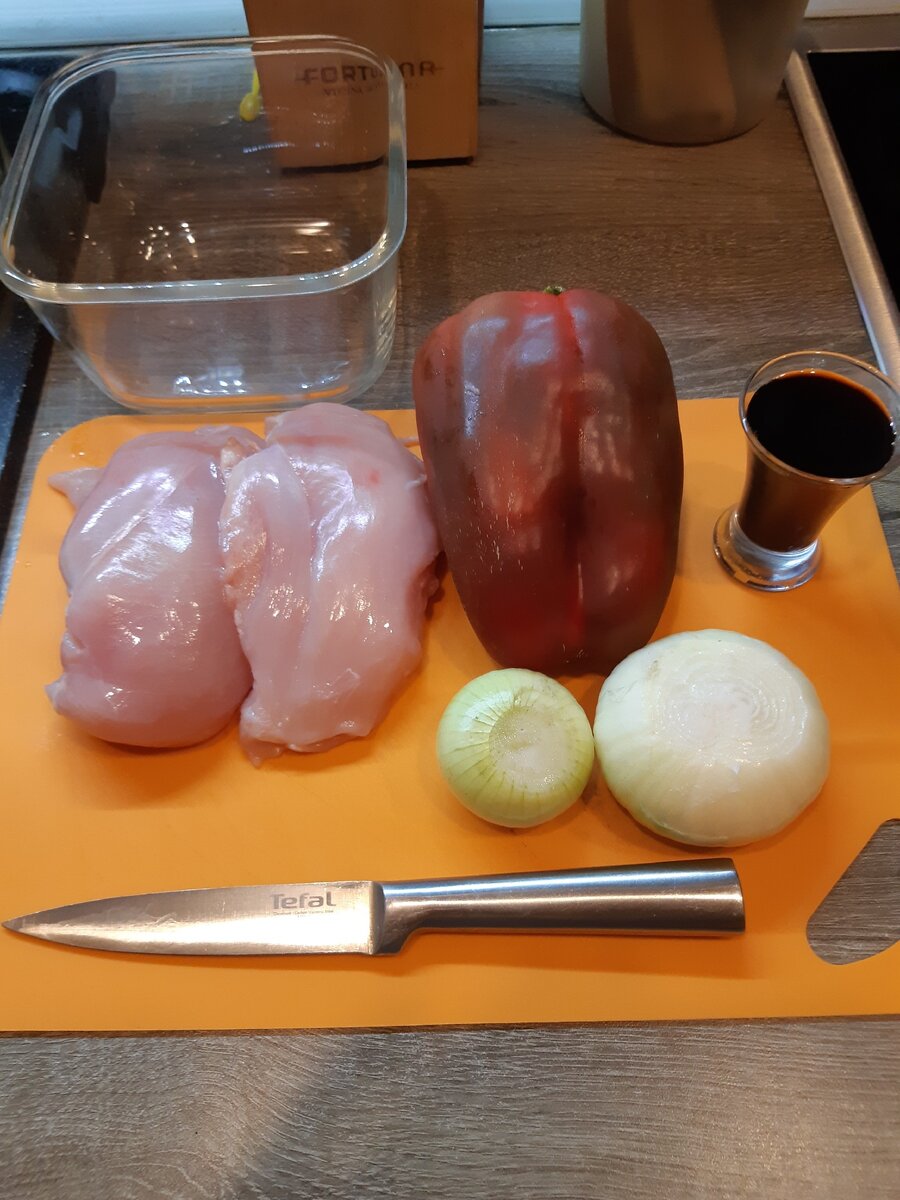 Доброго времени суток друзья! Сегодня покажу рецепт которым пользуюсь минимум раз в неделю. Куриная грудка с соевым соусом в вакууме. Для этого нам понадобится: - Куриная грудка 400 гр - Перец Болгарский 1 шт - Лук 2 шт - Соевый соус 50 мл Нарезаем куриную грудку, лук, перец. Закладываем в чашу для вакуума лук и грудку, заливаем 50 мл соевого соуса и ставим под вакуум на 10-15 минут ( любое мясо замаринованное в вакууме проходит данный процесс в разы быстрее) Разогреваем сковородку, Выкладываем куриную грудку с оващами. Обжариваем до полуоотовности и закрываем крышкой. Доводим до готовности и можно кушать. Данный рецепт понравился своей простотой и времени приготовления. Всем Приятного аппетита и хорошего настроения. Спасибо что дочитываете до конца!