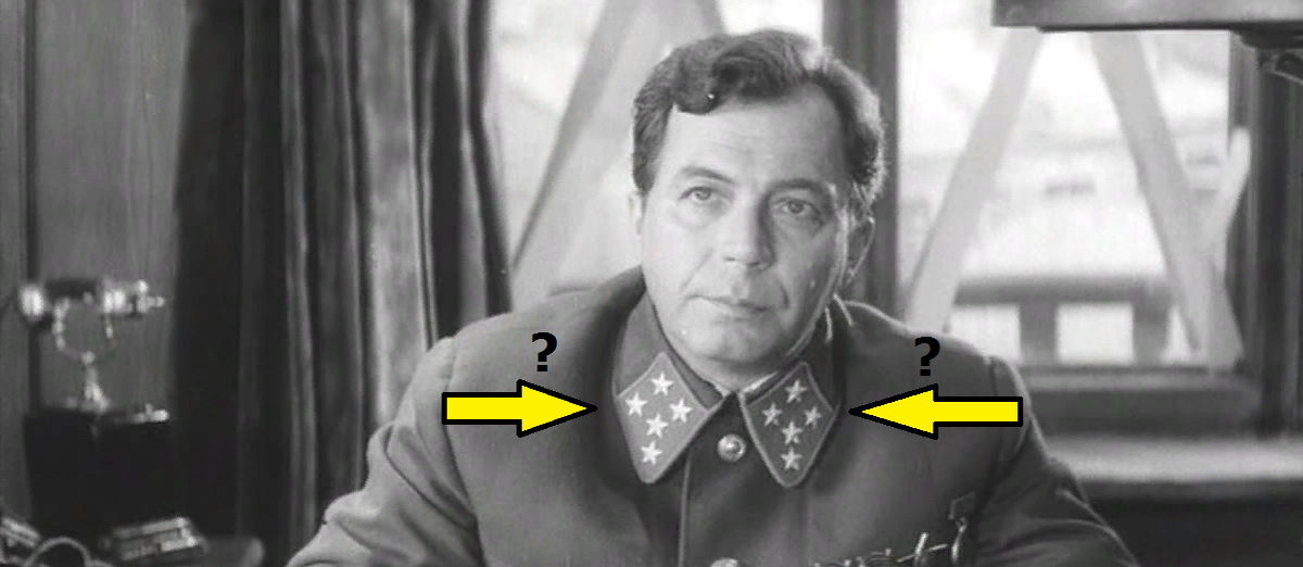 Есть такой фильм, называется Товарищ генерал, снятый в 1973-м году. Хочу заострить ваше внимание на таком вопиющем киноляпе для тех времён, как петлицы начальника генштаба. В современных фильмах о ВОВ, подобные ошибки встречаются ооочень часто. Не заморачиваются наши киноделы на такой мелочи, как историческая реалистичность. Ладно... понимаю... То ли денег в бюджете мало, чтоб нанять консультанта, то ли реквизит используют тот, который "под руку попался", то ли... режиссёр "так видит". Но в советские-то времена... за некоторые "ошибочки" можно было и лес отправиться валить. Согласны? Вернёмся к нашему начальнику генштаба. Петлицы... Это что за звание такое? Если генерал-полковник, то верхняя звёздочка - лишняя. И выглядит всё приблизительно вот так: Если генерал армии, то две нижние звёздочки нужно вверх подтянуть, чтобы стало так: Тем более, в те времена консультанты были всегда. В титрах это отображалось чётко. А может я чего-то не знаю? В таком случае поправьте меня пожалуйста.