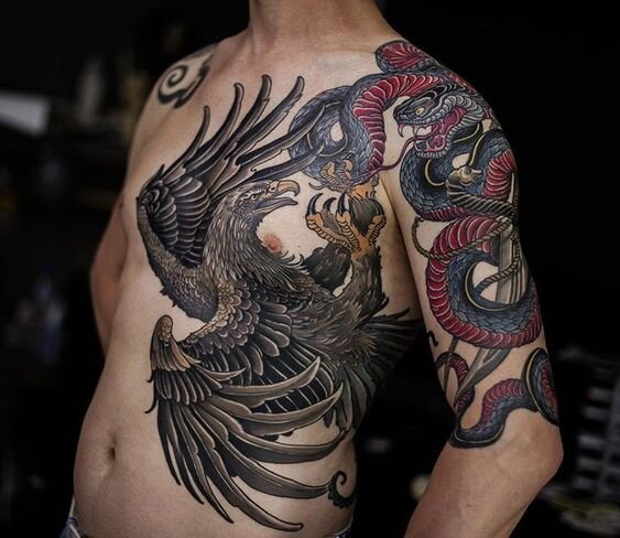 Рисунок на теле это не только украшение, но и целая идеология, скрытая в линиях и цвете. Изображение сокола можно увидеть, как на у мужчины, так и у женщины. Сильный пол предпочитает наносить реалистичные тату на спину, плечи, бедра. Иногда мастер использует для этого места с подвижными суставами, чтобы создавалась иллюзия движения птицы. А девушкам нравятся стилизованные тату. Изображение птиц часто встречается в культуре татуировки. Но эскизы с соколом имеют особое философское значение. Сокол — это царь среди птиц. Быстрый и стремительный хищник, способен выследить и быстро настичь свою жертву, падая камнем вниз. Недаром его использовали в царской охоте. Сокол является символом силы и свободы. Человек с такой татуировкой привык добиваться своих целей, вырывая победу у соперника. Эскизы с сапсаном, парящим в небе встречаются у дальновидных людей. Такие мужчины и женщины привыкли просчитывать ситуацию, а потом извлекать выгоду. Рисунок с пикирующим соколом можно увидеть у целеустре