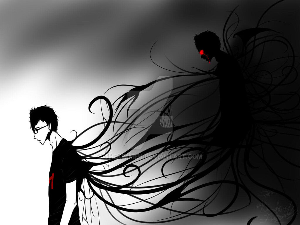 Но позволь мне уделить еще время, если я, конечно, тебя заинтересовал. Ты прочитал не большой кусок моих мыслей, и я уверен, что ты нашел в нём что - то интересное, ту часть себя возможно и не подозревавшую об этом. Но да ладно, вернемся к тому, что я хотел тебе рассказать. О демонах, которые наше с вами отражение души, состояние. А что если демон снаружи, а ты заперт?! Он запер тебя в твоем страхе все твои попытки выбраться, тщетны "ТЫ СЛАБ, А ЗНАЧИТ, Я БУДУ ДЕРЖАТЬ ТЕБЯ ВЗАПЕРТИ". И вот ты стал рабом части себя, думаешь, невозможно? Но это так. Изо дня в день тот, который тебя оказался сильнее живет, а ты только со своими мыслями, где то глубоко в себе. Где нет никого кроме тебя. Вот что бывает, когда он голодный и вырвался, теперь ты должен страдать, почувствовать ту боль, голод что он ощущал все эти годы в тысячекратном размере. И как же с ним бороться? Нужно стать сильным и выбраться, разорвать оковы, в которые угодил ты по собственной глупости став заложником своих же желаний, в