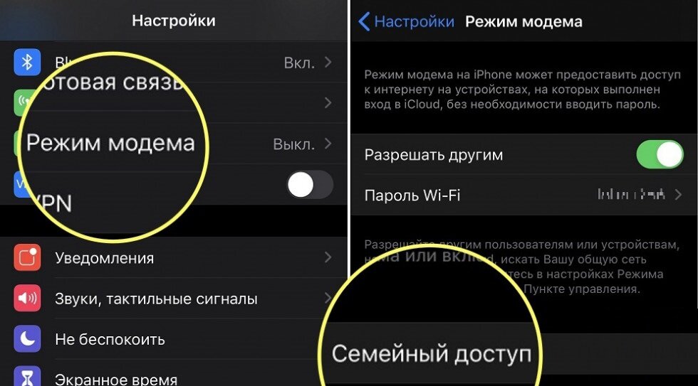 Компания Apple активно модернизирует способы взаимодействия устройств между друг другом, объединяет их в единую экосистему. С выходом iOS 13 стало возможным настроить личную точку доступа Wi-Fi, поддерживающую режим фоновой передачи данных. При данном подходе к организации взаимодействия, устройства Компании Apple будут подключаться автоматически. Режим модема на iPhone Операторы сотовой связи относятся к раздаче интернета по-разному, далеко не каждый из них позволит одним взмахом пальца включить данный режим на смартфоне. Если в Настройках вашего iPhone нет функции режима модема, обратитесь к вашему оператору сотовой связи. Функция «Режим модема» предназначена для раздачи мобильного интернета, используя устройство iPhone или iPad в роли точки доступа Wi-Fi. Модем, к слову, умеет работать в фоновом режиме, поэтому ручная активация и ввод пароля не будут запрашиваться. Устройство, которое подключается к созданной точке доступа Wi-Fi, должно находиться в списке «Семейный доступ». Нап