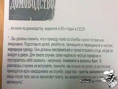 Из советской книги по домоводству: Ну а я пришел не с работы, но жена по- привычке встретила меня так, как прописано в вышеуказанном руководстве. И приготовила мне свое любимое блюдо- мясо в хлебе и пиве, а пива мне не оставила! Итак, сразу говорю, если вы только вчера купили КНИГУ О ВКУСНОЙ И ЗДОРОВОЙ ПИЩЕ и предел ваших мечтаний – сосиска с пюре и зеленым горошком, то незачем вам читать этот опус. Рецепт для настоящих борцов с дистрофией.