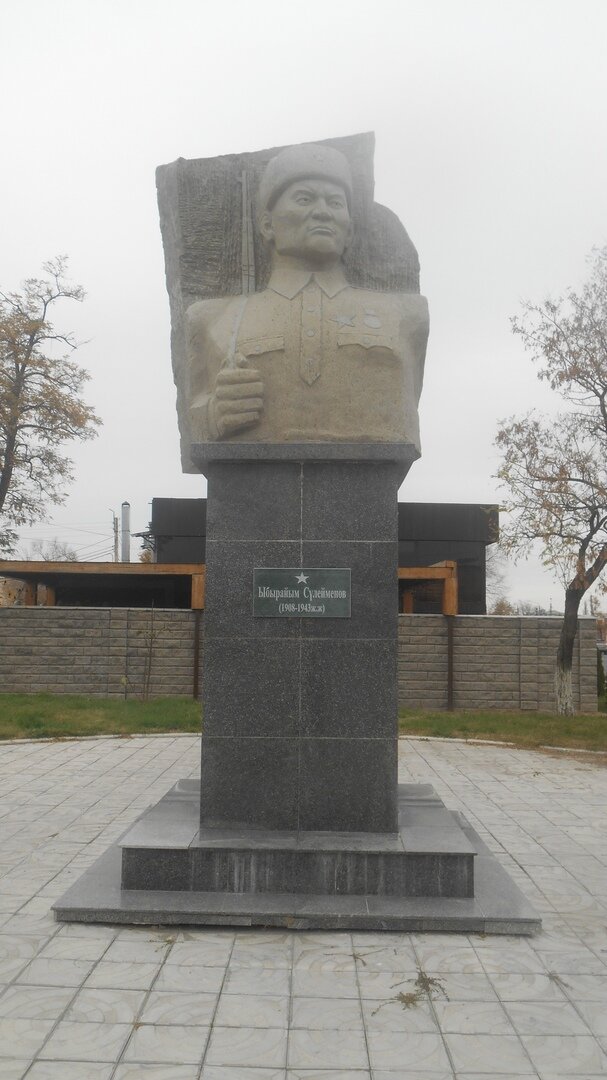 Рассказывая о своих земляках – героях Великой Отечественной Войны, я не могу пройти мимо снайпера Ыбырайыма Сулейменова. Родился Ыбырайым (Ибраим, Ибрагим) Сулейменов в 1908 году, в селе Сарысу (ныне Сарысуский район Жамбылской области), в 1941 году, ушел на фронт. На фронте стал снайпером. Очень результативным, кстати говоря, снайпером. На октябрь 1943-го года за Сулейменовым числилось 289 убитых фашистов. О нем писали газеты, его боялись гитлеровцы. Даже Жамбыл Жабаев ему посвятил стихотворение. Но, честно говоря, я такого стихотворения не нашел, хотя внимательно просмотрел всю «военную» лирику Жамбыла Жабаева. Может, плохо смотрел…. Не знаю. Широко известна речь Сулейменова на снайперском слете в Великих Луках летом 1943 года. «Почему я стал снайпером? Я начал войну под Москвой. Я видел расстрелянных колхозников, колхозниц и их детей. Я входил в дома, и мне говорили люди, как издевались над ними гитлеровцы. Я видел в каждом доме горе, страдание... Я и сейчас не могу спокойно чувс