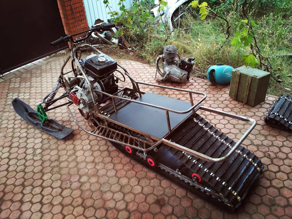 Не оскудеет земля Русская Кулибиными и самоделкиными. И даже когда доступными станут реактивные и гравитационные двигатели наш мужик в гараже приспособит их для поездок на рыбалку или охоту. Лично мне больше всего приглянулся последний вариант. Достаточно простая конструкция для повторения. Не нужно заморачиваться с поиском или изготовлением трака. Кстати я видел вариант трака из транспортерной ленты и пластиковых водопроводных труб, разрезанных пополам вдоль. Все фото из Яндекс.Картинки.