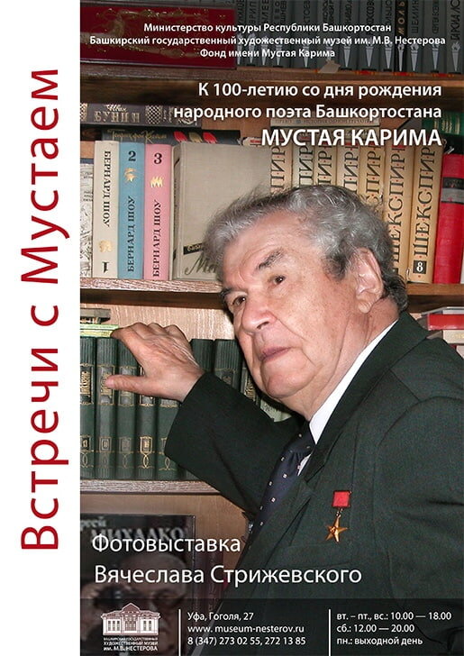 В пятницу в Уфимском нестеровском художественном музее открылась выставка известного фотографа Вячеслава Стрижевского, посвященная 100-летию классика башкирской литературы Мустая Карима. Вячеслав Александрович - тонкий ценитель поэзии и литературы, культуры и искусства. Его фотографии ценны тем, что заставляют зрителей думать и размышлять о вещах, далеких от будничных забот. Фотопроект «Встречи с Мустаем» можно посетить с детьми. Вас ждут три зала прекрасных работ Стрижевского. Стоимость билетов: 150 руб., для студентов, пенсионеров - 100 руб., для школьников - 50 руб.