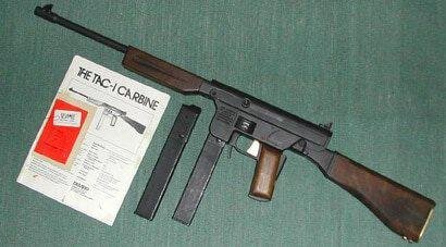 Производители оружия давно создают специализированные модели, под отдельные сегменты рынка. Сегодня есть производители шикарного охотничьего оружия, черных тактических винтовок для тех, кто летает на C-130 или карманных пистолетиков для самообороны. Ну, а в 1970-х годах в Коннектикуте появился парень с идеей полицейского карабина с парой изящных деталей, которые обеспечили оружию место в этой ленте. Gerard Jerry Fox запатентовал и собрал Tac-1, карабин предназначенный для полиции и охранников тюрем. На случай захвата, утери или кражи у карабина был кодовый замок, который блокировал стрельбу. Кроме того, опционально в прикладе устанавливалась аккумуляторная батарея, от которой питалась дубинка со встроенным электрошокером. И это не считая взаимозаменяемых стволов под 9 мм патрон и .45 ACP. Баллистические ножи - приспособления, стреляющие клинками, в отличие от тех же НРС - ножей со встроенным пистолетом, задокументированы плохо. Их использование приписывают всем кому не лень, начиная
