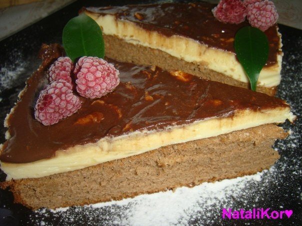 Сверху покрыть глазурью: 2ст.л. какао+2ст.л.сахара+2ст.л. молока+20 гр. сл.масла+ несколько кубиков шоколада.Всё прогреть в микро и тщательно перемешать до однородного состояния